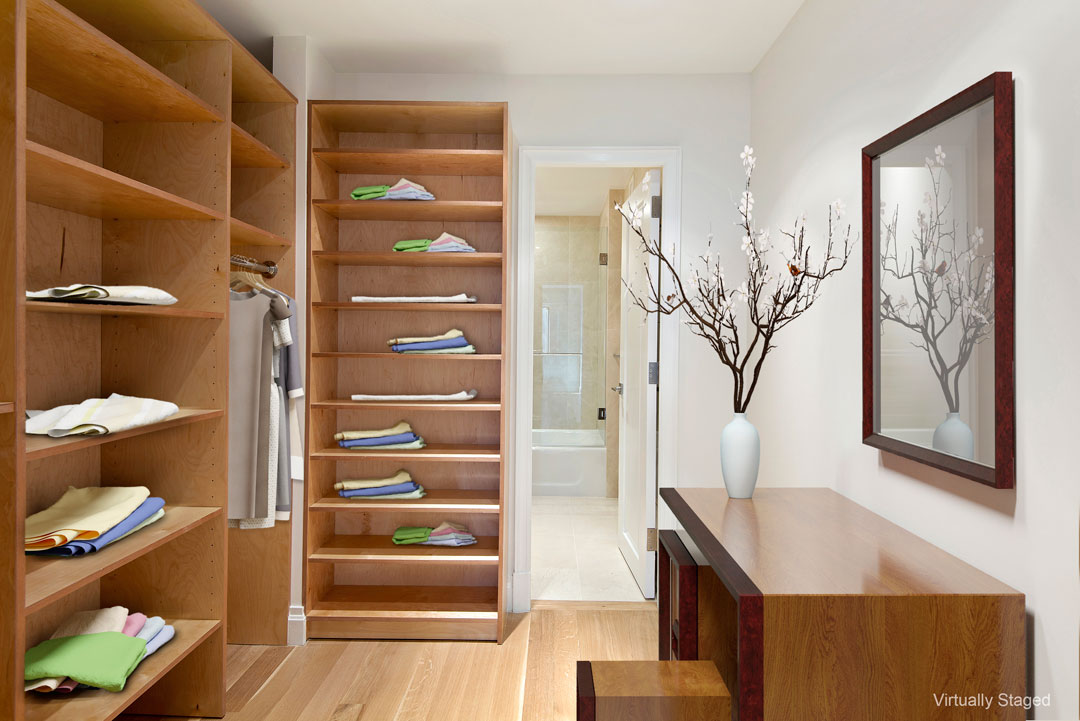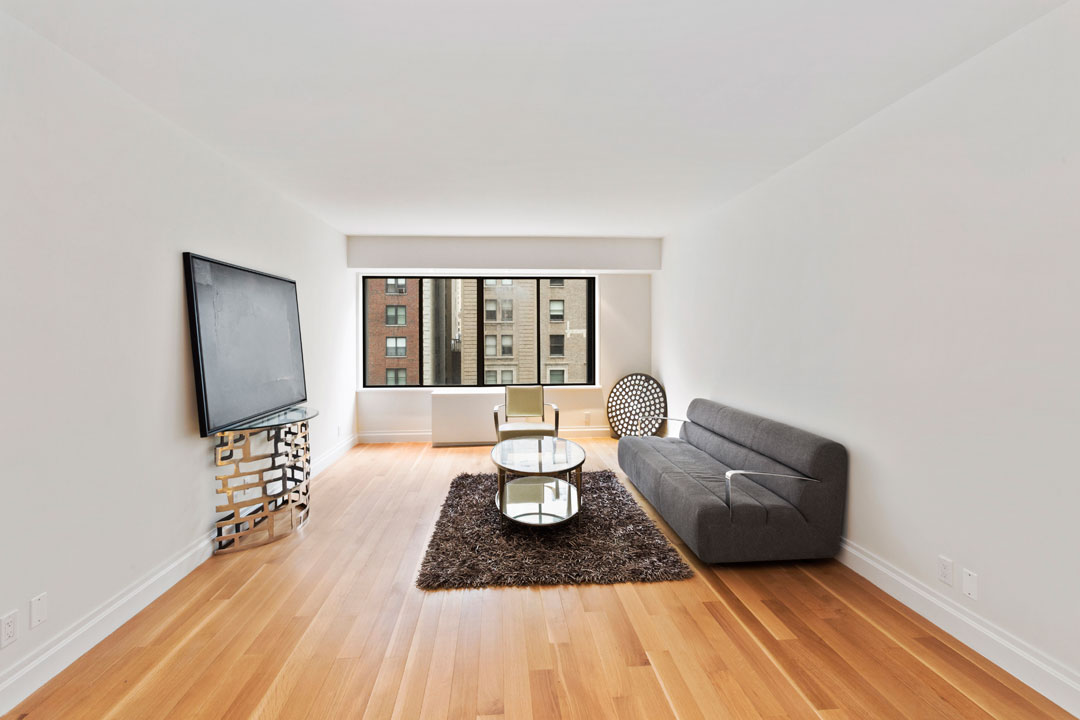 The whole apartment has been luxuriously appointed with high-end finishes and Viking appliances in the all-white kitchen. The single bedroom is spacious and features a walk-in closet and luxurious en-suite bathroom with a soaking tub and glass-enclosed shower. Additional amenities at the Park 900 condominium building—one of the few of its kind on Park Ave—include a doorman, concierge, gym and garage.