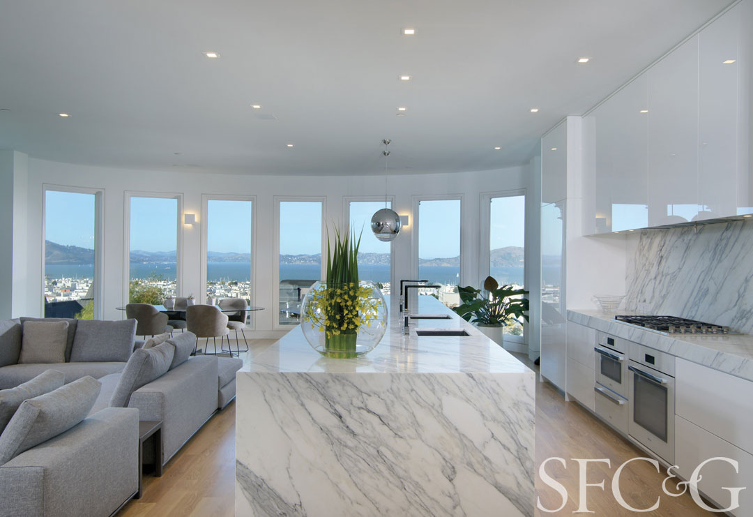The kitchen at 2701 Broadway, the grand Pacific Heights estate that sold for $31 million last year, was clearly designed for large, lavish parties. At its center is an immense, marble-topped island with an unusual oval shape that beckons guests to gather round. More important than having posh appliances, today’s high-end kitchen “Absolutely has to look as if it has been designed for family and friends to hang out in,” says Neal Ward, who represented the listing and is a founding member of the new San Francisco office of Compass.