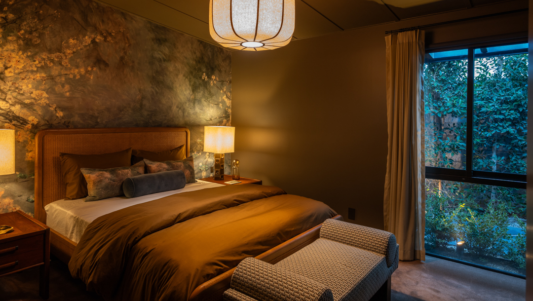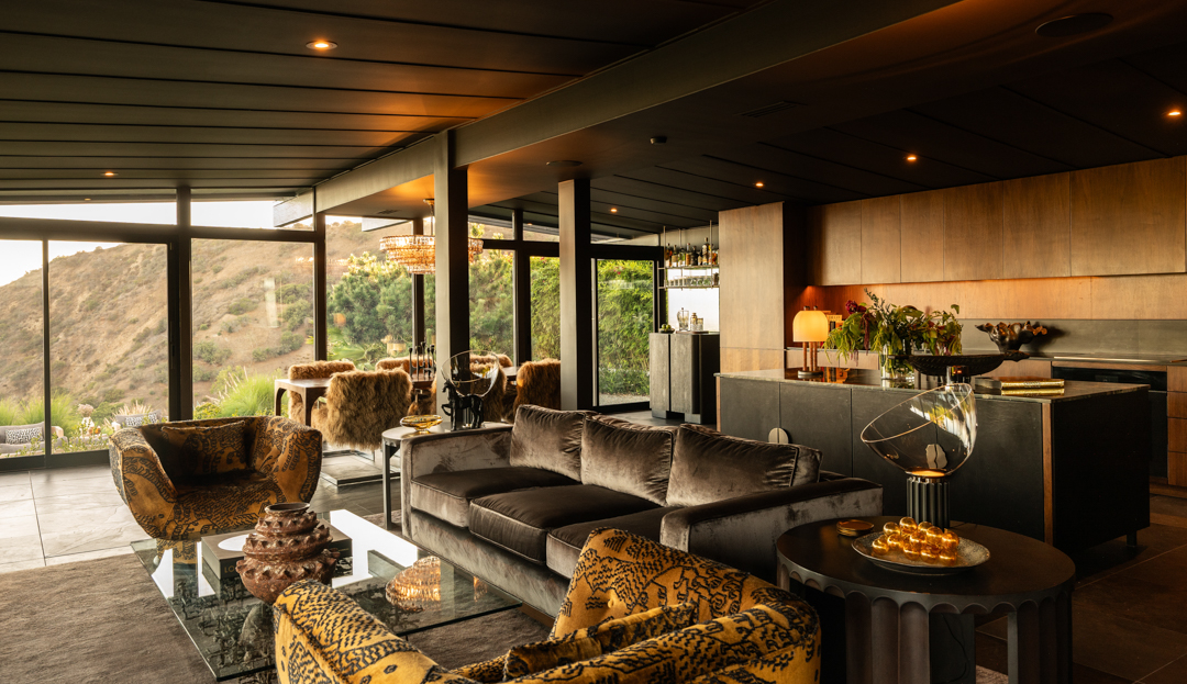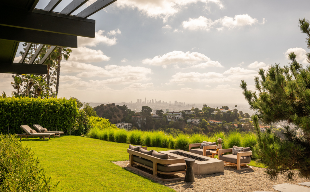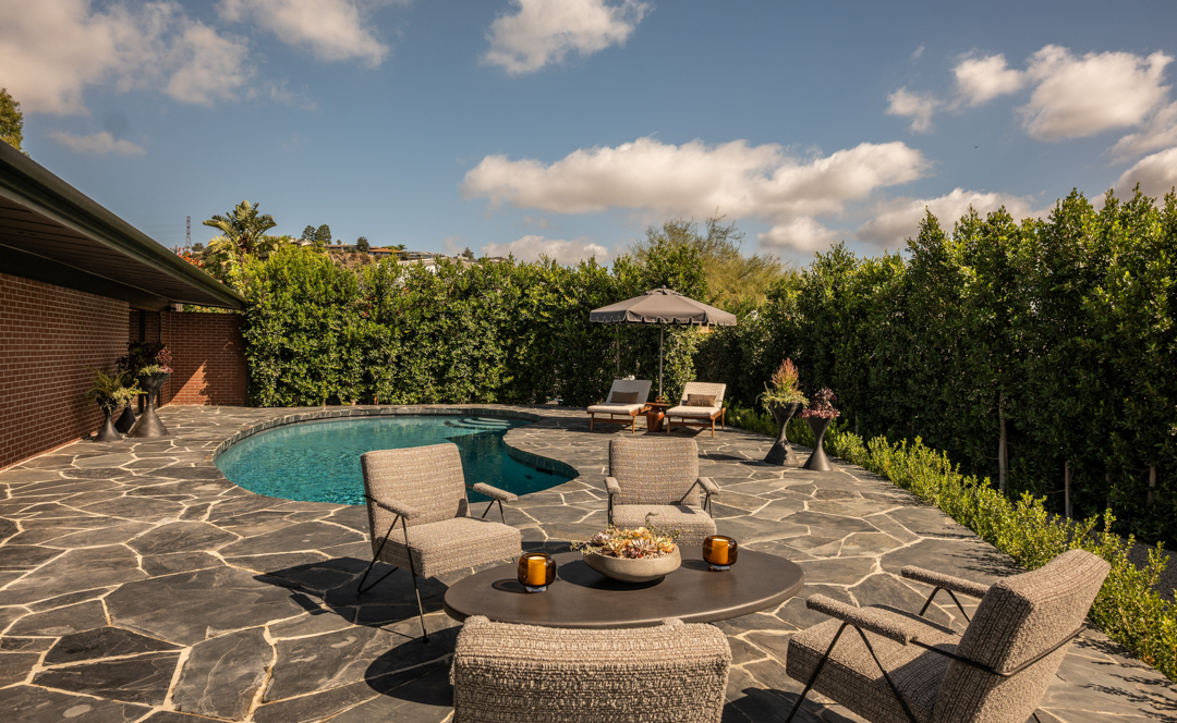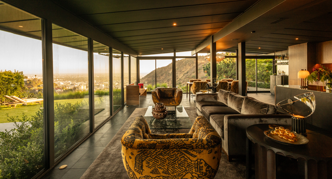 Glassy and chic, the midcentury gem is ideal for a stylish singleton or couple as it offers just 2,000 square feet, with three bedrooms and two bathrooms. Today, its especially suave with custom furnishings in top-of-the-line fabrics like Schumacher, Perennials, Pierre Frey, and Dedar. Floor-to-ceiling windows blur the lines between indoors and out, with panoramic views of Los Angeles showing off what a prime location it’s perched in. Outside, there is complete privacy. A stone walkway leads to the home, while a swimming pool and plenty of lounging terraces await out back. The two-car garage is equipped with a Tesla charger.