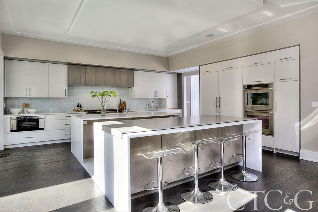 The coolest aspect of this super-cool spec home kitchen is its system of islands. Interior designer Amy Ringer created them so that they can be positioned as separate spaces dedicated to either food prep or dining. Or they can easily be reconfigured to form one unit. Seemingly designed according to the architect Le Corbusier’s mandate for the home to serve as “a machine for living in,” the entire kitchen and its adjoining living/dining space is elegantly efficient with clean lines, glass walls and gorgeous use of natural wood. The Westport home measures 8,500 square feet and includes resort-like outdoor kitchen and living spaces. It lists for $4,295,000 with Sue Lieberman of the Riverside Realty Group.