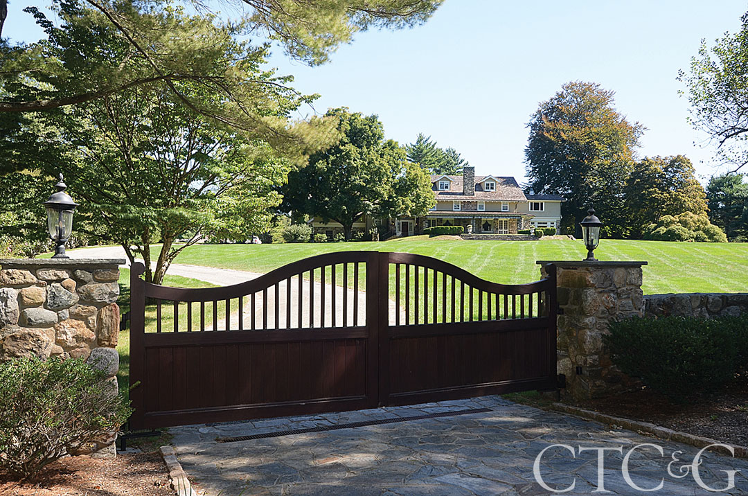 Another swoon-worthy, close-to-town manor sits high on nearly three acres along Ponus Ridge Road in New Canaan. Built in 1910, the home was beautifully renovated in 2005 by Louise Brooks, who restored the iconic woodwork embellishing the Arts & Crafts-style stonework, gables and porches. The 7,886-square-foot interiors also got a thorough polish, now offering a paneled library with a wet bar, a formal living room with a stone hearth, an open-plan chef’s kitchen and a master suite with a fireplace, along with an additional five bedrooms. It lists for $3,575,000 with Sherri Kielland of Houlihan Lawrence.