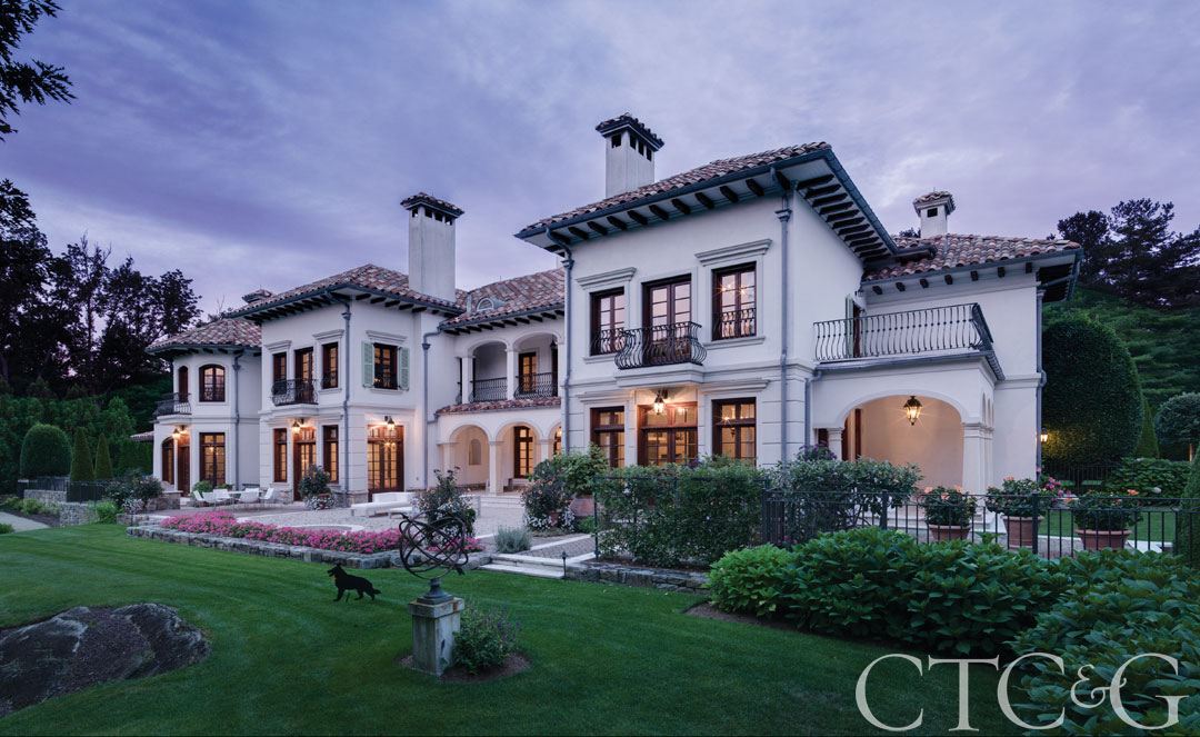 If you’re in more of a Mediterranean mood, check out this red-tile-roofed beauty listed for $21.5 million. Resembling a Spanish villa with its white stucco façade, wrought-iron railings and gracious porticos, the Greenwich home was designed by architect Boris Baranovich in 2005—but with antique elements including reclaimed millwork and salvaged stone floors. Its long list of amenities includes an elevator, an indoor basketball court, a billiards room and a wine cellar with computerized inventory control. The 4.44-acre grounds feature gardens designed by Edmund Hollander, an expansive pool with a mini-me pool house and tennis and bocce courts. Lyn Stevens with Douglas Elliman has the listing.