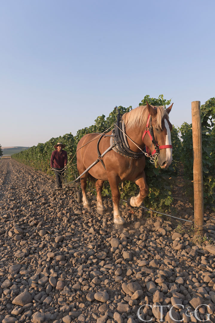 On a recent wine trip to Washington State, I watched a hefty draft horse pull an old-fashioned plow through grapevines spaced only three feet apart. The terrain was littered with rocks the size of softballs, recalling the stony vineyards of Châteauneuf-du-Pape along the Rhône Valley in France. Later, at Cayuse winery, I tasted the fruits of their equine efforts, a cult wine called Horsepower, made from grapes grown in a vineyard plowed by a team of five horses. Christophe Baron, the biodynamic pioneer behind Horsepower, has mesmerized aficionados for years, producing hit after hit in the Pacific Northwest from Bionic Frog to Impulsivo, God Only Knows to Widowmaker.