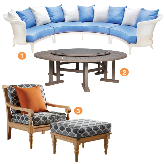 3. West Indies meets English garden in Ethan Allen’s Millbrook teak collection featuring turned legs and carved arms, outfitted in dozens of stylish outdoor fabric options. Ethan Allen, Norwalk, 203-846-9545.