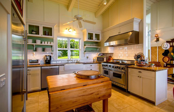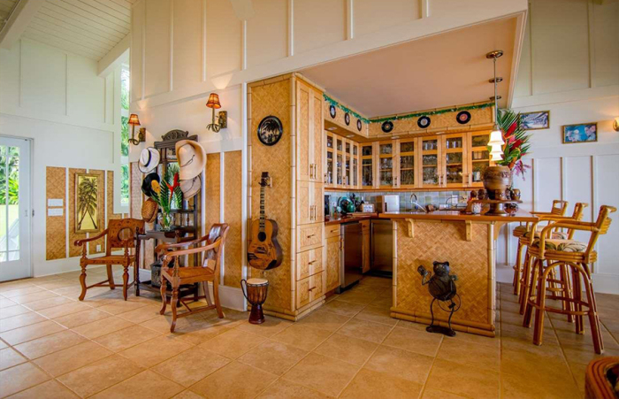 This island hideaway sits on 1.1 lush acres in the coveted Pu’uiki area on Maui’s eastern coast and features the 2-bedroom, 3-bathroom main house along with a detached garage that includes a loft studio, which Benatar and Giraldo used as a recording studio and fitness room. A private deck on the garage and sprawling lanai off the back of the main house take in the ocean views.
