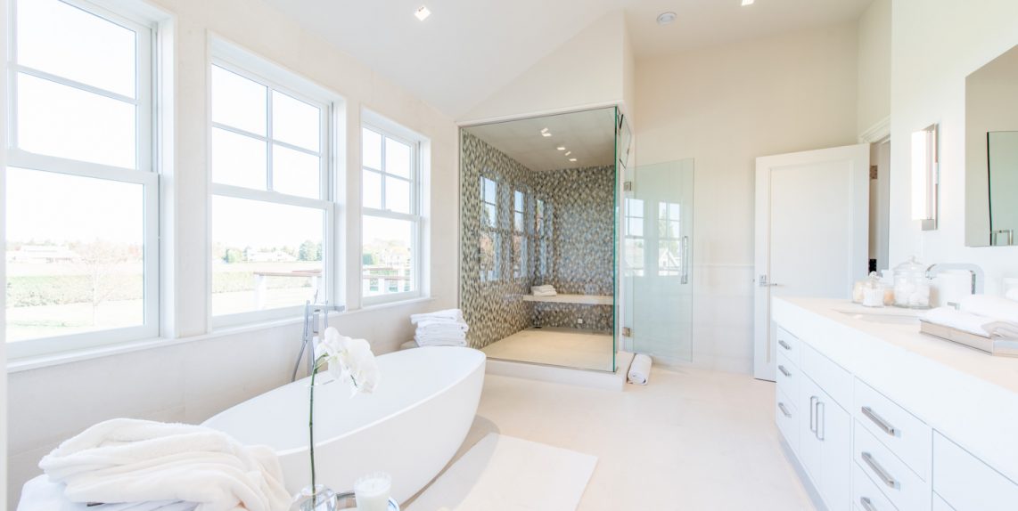This grand contemporary home offers interiors dressed in a neutral palette with white oak floors, limestone fireplaces and coffered ceilings as well as dramatic walls of glass that bring the outdoors in. A total of 10 bedrooms and 12 bathrooms are spread out over 13,000 square feet of living space. The first level houses entertaining spaces including an expansive great room, a professionally appointed chef’s kitchen and a formal dining room as well as a guest master suite. 5 additional en-suite bedrooms are found on the upper level—2 of which offer private terraces—along with the master wing, which includes a sitting room, private balcony and spa-like master bathroom. A finished lower level completes the main home and offers 2 more guest suites plus a gym, rec room and home theater. An additional 1,500-square-foot, 2-story pool house is found on the 2.6-acre property.