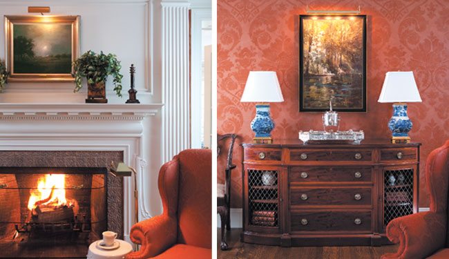 In the library, where the Governor holds informal work meetings, the Malloys and their three sons also like to relax in front of the TV, “so, it couldn’t be too austere or forbidding,” says Paula Perlini. The designer, who enjoys a country home in Lyme, is no stranger to significant structures. She worked for decorator Mark Hampton on Blair House, the residence for the President’s guests during the first Bush administration, and helped restore New York City’s Gracie Mansion. “Being involved with historical buildings has always lit my fire,” says Perlini.