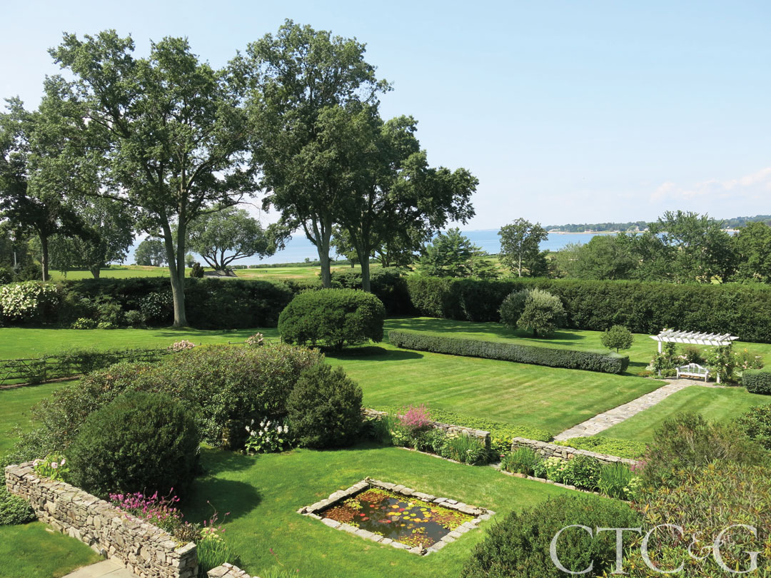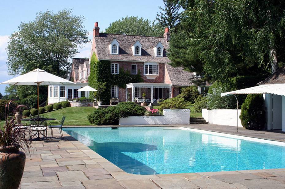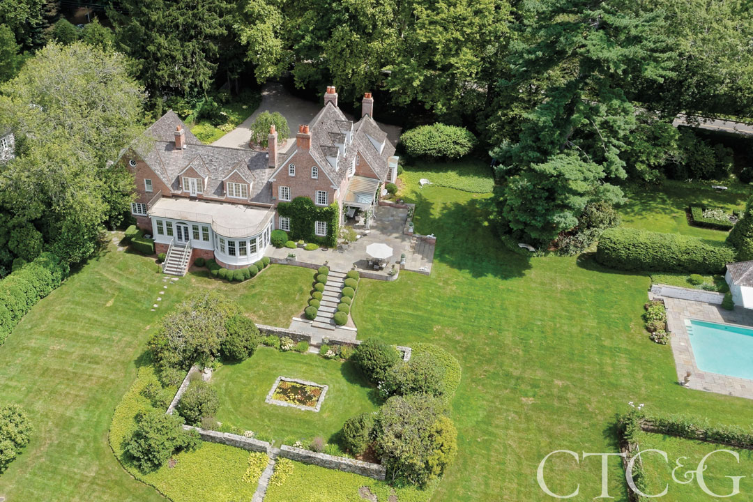 A Southport property that once served as a summer home to Noel Coward has hit the market for $5,895,000. Sited on almost three acres along Sasco Hill Road, the circa-1926 Georgian Revival estate has views over Long Island Sound, Southport Harbor and the Country Club of Fairfield golf course. The grounds have formal gardens, ornamental hedging and sculpted boxwoods, as well as a pretty pool and terrace. Inside the nearly 6,000-square-foot, red-brick manor, there are seven bedrooms and 10 bathrooms. It lists with Andrew Whiteley of Al Filippone Associates, affiliated with William Raveis Real Estate.