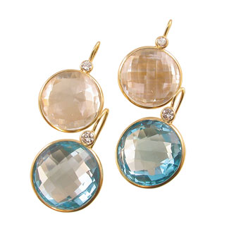 18 karat yellow gold, white topaz and diamond gumdrop earrings, $1050;