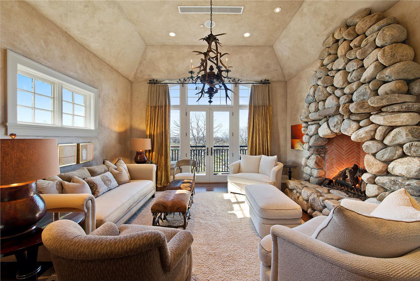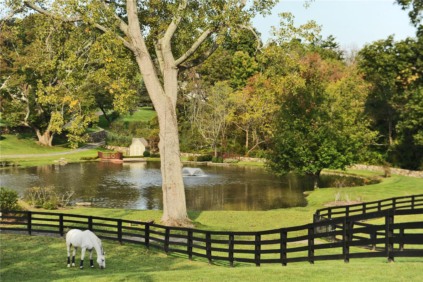 In Ridgefield, Double H Farm sits on a high, 87-acre spread along the New York state border. The circa-1765 property was once owned by a Canadian railroad tycoon, who turned an existing dairy farm into a world-class equestrian facility, now offering two barns with more than 40 stalls, four grooming and wash stalls, staff apartments, a riding ring and a jumping course. The owners made a name for themselves with their stallions, jumpers and hunters. But even for non-horse-fanciers, Double H appeals with its 14,5000-square-foot, green-technology main house. The living room, for instance, has 38-foot-high ceilings, a massive limestone fireplace and exposed barn-beam scaffolding. The master suite is equally grand with its 20-foot domed ceilings, another fireplace, a marble bathroom and even a safe room. Additional amenities include a golf room with a simulator, a wine cellar and mahogany decks with stone fire pits. Sally Slater of Douglas Elliman Real Estate represents the listing (price upon request).