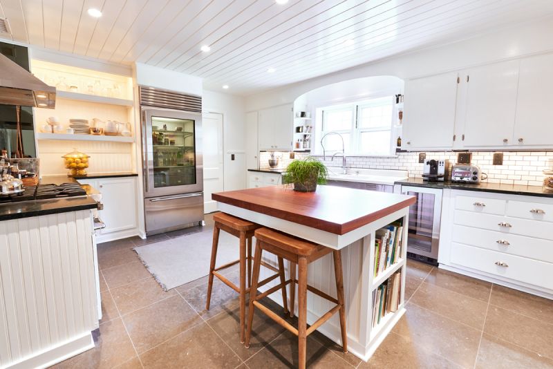 In Lakeville, there’s a circa-1941 cottage constructed of local stone. At less than 2,000 square feet, it too has a stylish kitchen, featuring subway-tiled walls, a Viking stove, a Sub-Zero fridge and open shelving. There’s a formal dining room and pretty living room with a massive stone hearth downstairs, as well as a huge screen porch with built-in seating; upstairs there’s a master suite with a white marble bathroom. In all, the cottage has two bedrooms and one full and one half bathroom. It lists for $749,000 with Graham Klemm of Klemm Real Estate.