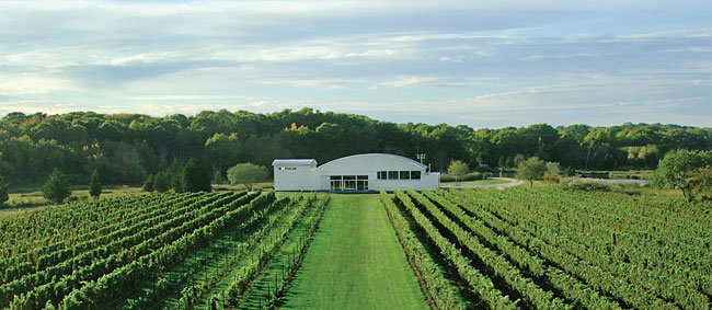 When Michael Connery (a former lawyer with Skadden, Arps) bought the land in 2001, it was just an old airfield with a landing strip. He wasn’t quite sure what to do with the property and its World War II-era hangar designed by late architect John W. Lincoln (a colleague of Walter Gropius). But after spending time among Long Island’s wineries—and conferring with experts there—he decided to try his hand at planting vines.