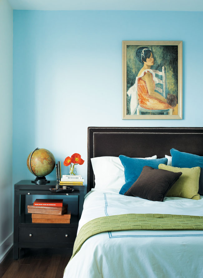 Eventually they purchased two adjoining one-bedroom units on the 58th floor of the Orion, a new glass tower in gentrifying Hell’s Kitchen, and enlisted architect James Bartholomew to combine them into the high-rise haven of their dreams. In addition to the building’s amazing views and amenities, Gold says, “The floors were a beautiful cherry wood, and the kitchens and bathrooms were great.” Now all they needed to do was furnish the place.