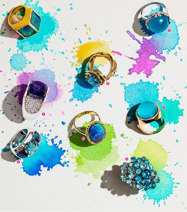 1. Irene Neuwirth ring with a pair of Boulder opals set in 18K yellow gold. $10,450, Mitchells, 670 Post Road East, Westport, 203-227-5165, Richards, 359 Greenwich Ave., Greenwich, 203-622-0551, mitchellstores.com, ireneneuwirth.com.