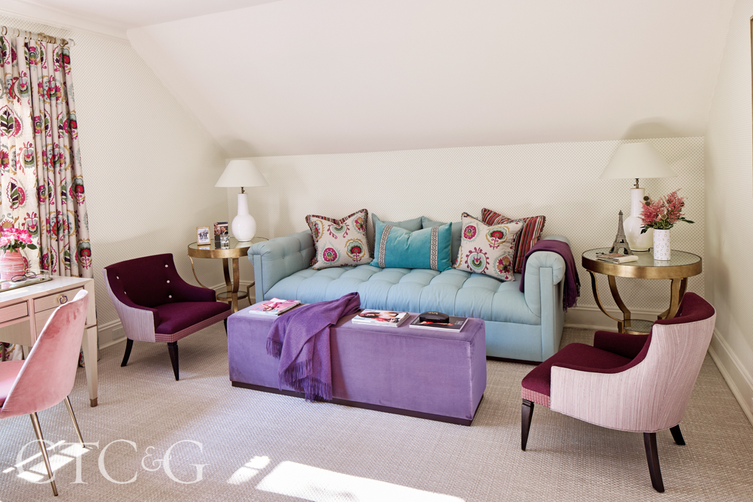For years, Banks had kept in storage two colorful French paintings she had bought never knowing where they might wind up, but confident they were fine pieces worthy of the right interior. “Those two paintings were perfect for this living room,” explains Banks. “They were the drivers for the interior palette of the rest of the house. The colors are the thread that carries through room to room.”