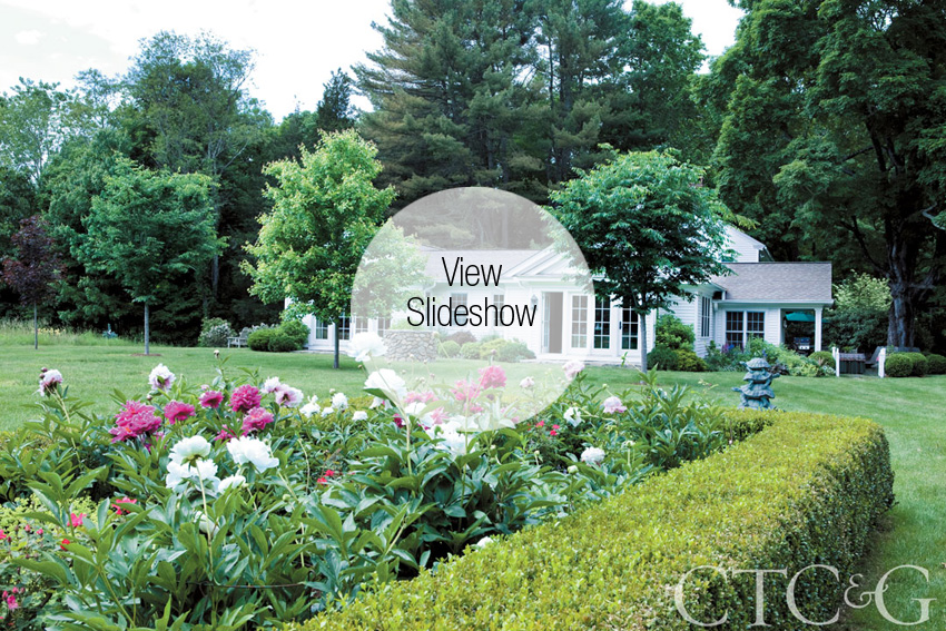 The home she and her husband, Carl Christensen, renovated in Lyme more than substantiates her point. When the duo purchased the 18th-century structure seven years ago, Perlini couldn’t wait to cover the existing living room paneling in a vivid tone of granny apple green (“I call it lyme,” she chuckles), infuse the Venetian plaster in the master bedroom with a serene shade of seafoam, and cover the walls in the kitchen addition in an arts and crafts wallpaper with an orange and mustard print on a hemlock background.