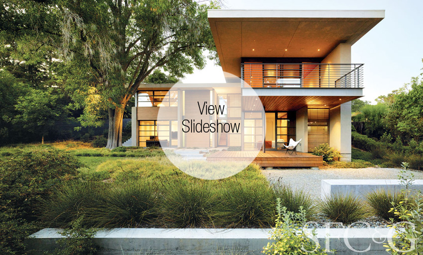 The building was a 1950s ramshackle bungalow when the clients acquired it, but has been transformed into a minimalist masterpiece. It all began with extensive client meetings followed by a campout, “to get a feel for the nuances of the site at all times of the day,” says Aidlin. “The clients have a very sophisticated eye and are also very private people.” The intent was to build an informal, light-filled home with a modest street presence—and one that would capitalize on the southerly views of the Stanford hills beyond. Using a series of strong north-south anchor walls, and combinations of natural, cost-effective materials—plaster with planes of cedar wood, concrete, bamboo flooring—the firm achieved a streamlined, utilitarian space with a decidedly midcentury modern feel.