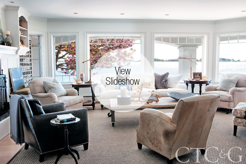 The pressure was on. The designer had five weeks to get the Bell Island home ready. Structurally the building was in great shape. The interiors, however, required a complete overhaul—new plumbing, wiring, stonework, tiling and painting. “The house was beautifully done,” says von Bargen. “But it was very much like a Florida home—lots of bright colors and window treatments. I wanted something that was more soothing, more restrained.”