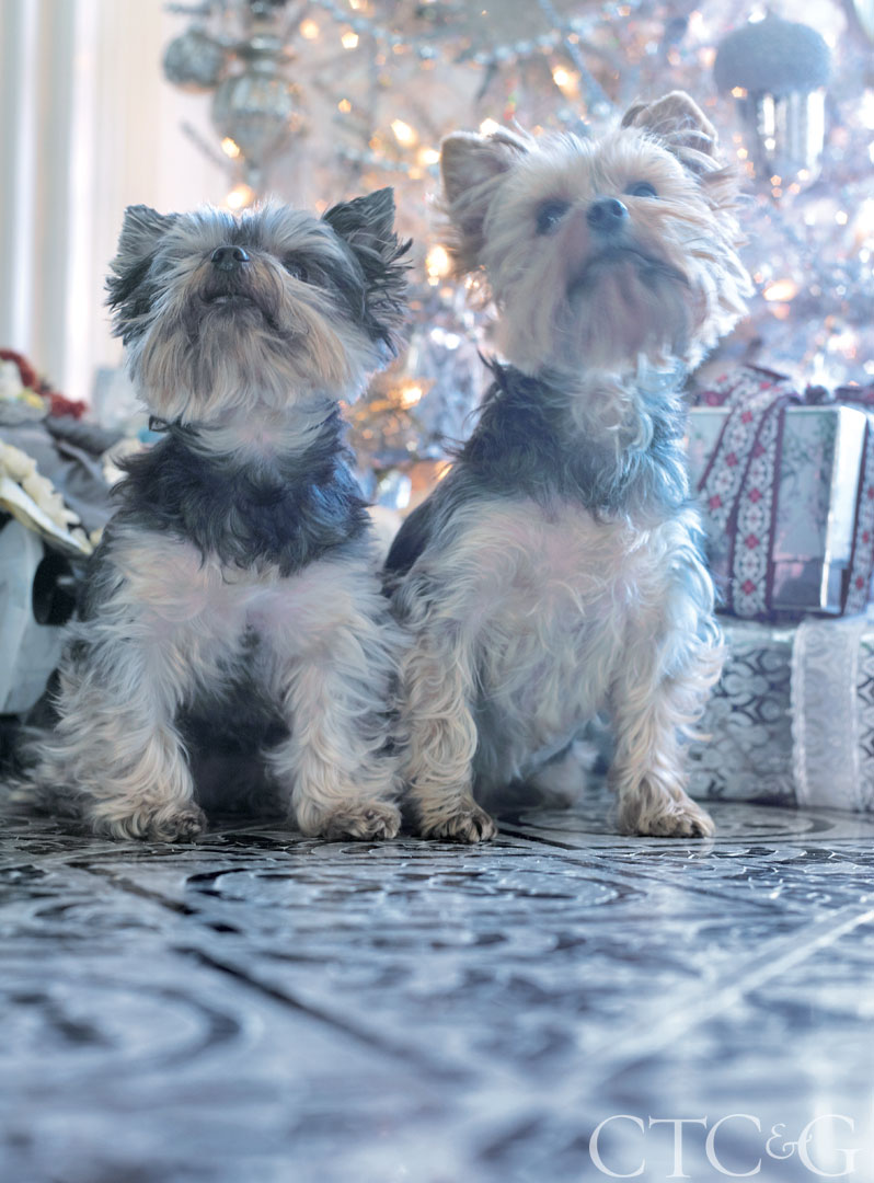 Hornung’s Teacup Yorkies, Fergie and Bailey, get into the holiday spirit.