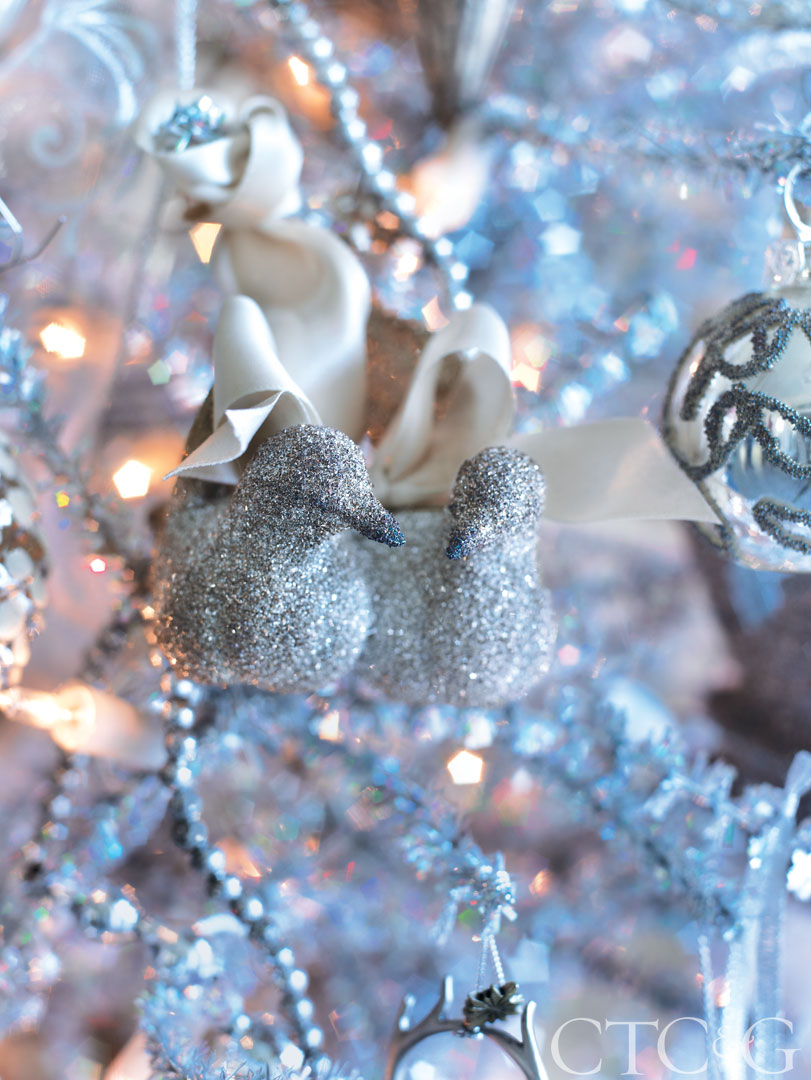 Silvery birds are part of Maggie Hornung’s collection of ornaments.