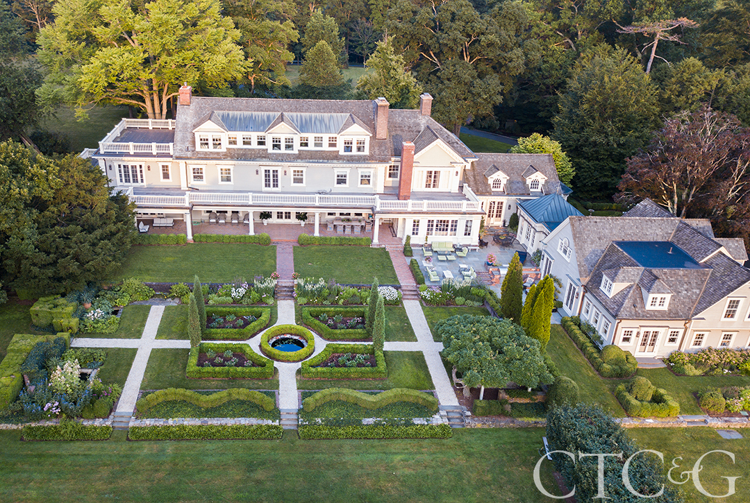 And grand it had truly been. The Georgian-style mansion was built in 1910, set on the highest ridge in New Canaan, surrounded by formal terraced gardens, an apple orchard, tennis court and pool, spread out over more than eight acres. The current homeowners purchased the property in 2010 and started searching for someone who could bring their vision for the property to life. “We wanted to keep the wisteria-covered pergola, which is the namesake of the property,” the husband says. “And the original fountain and koi ponds were other important features we wanted to maintain.”