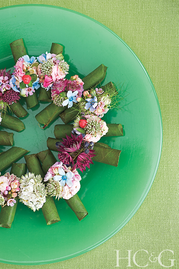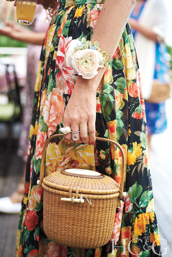 Along with her Topiaire Flower Shop–designed flower bracelet, guest Nina Runsdorf sported a vintage Nantucket Lightship Basket.