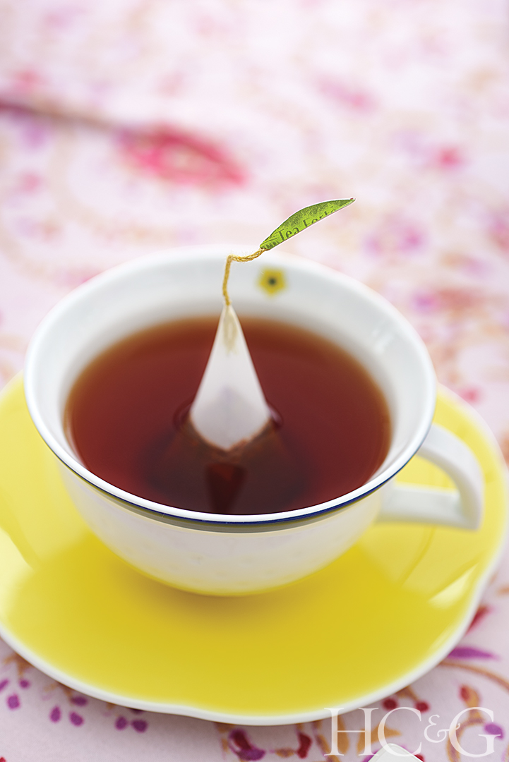 Hot tea from Tea Forté was served in ceramic teacups and saucers from Richard Ginori.