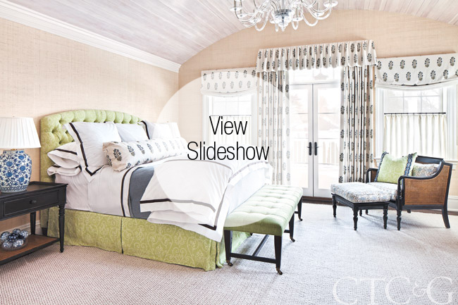 Balancing luxury and comfort every step of the way, the designer introduced deep, plush seating in what she calls “agreeable fabrics.” “There’s nothing too precious, and I used lots of lightweight linens and cottons like you’d find at a beach house,” she says, noting grasscloth on select walls and sisals underfoot keep the breezy theme going. “Everything feels appropriate for a coastline house.”