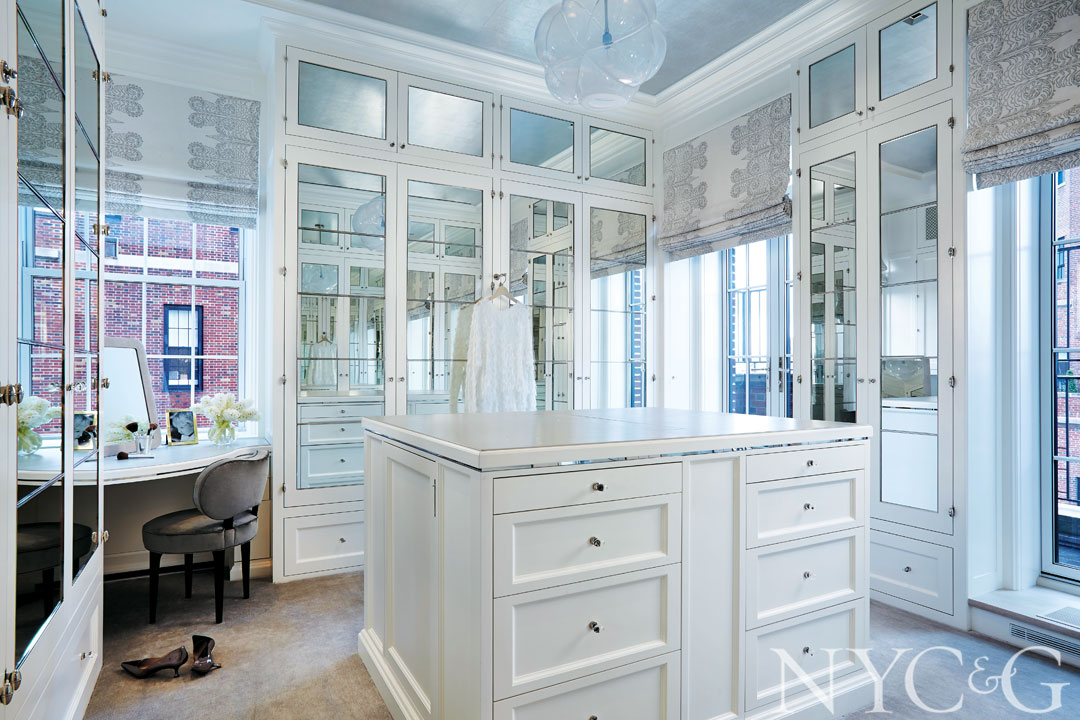 A prior gut renovation of this duplex in a Rosario Candela building on Park Avenue had left it devoid of its once-elegant detailing. Part of Mitchell Studio’s role was to reintroduce that lost grandeur, while updating the apartment for a young family. The original Candela staircase was retained, and doors were added throughout first-floor rooms to improve traffic flow. A dense agglomeration of servants’ rooms was transformed into an eat-in kitchen and family room, and second-floor bedrooms were reconfigured, particularly the master suite and its mirrored dressing area and balcony. Judge Shawn Henderson notes the project’s “nice, classic detailing.”