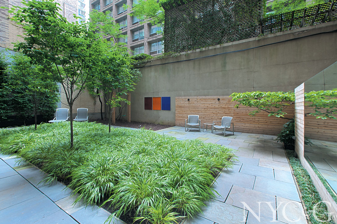 Even the owner of this private garden on the Upper West Side—a best-selling author—couldn’t have written a happier ending. To create what judge Shawn Henderson describes as a “calm and balanced space,” Barry Goralnick removed old wood decking and pavers and constructed a teak wall around the garden in the center, hanging a 12-foot mirror to extend the area visually while concealing heating, ventilation, and air-conditioning units.