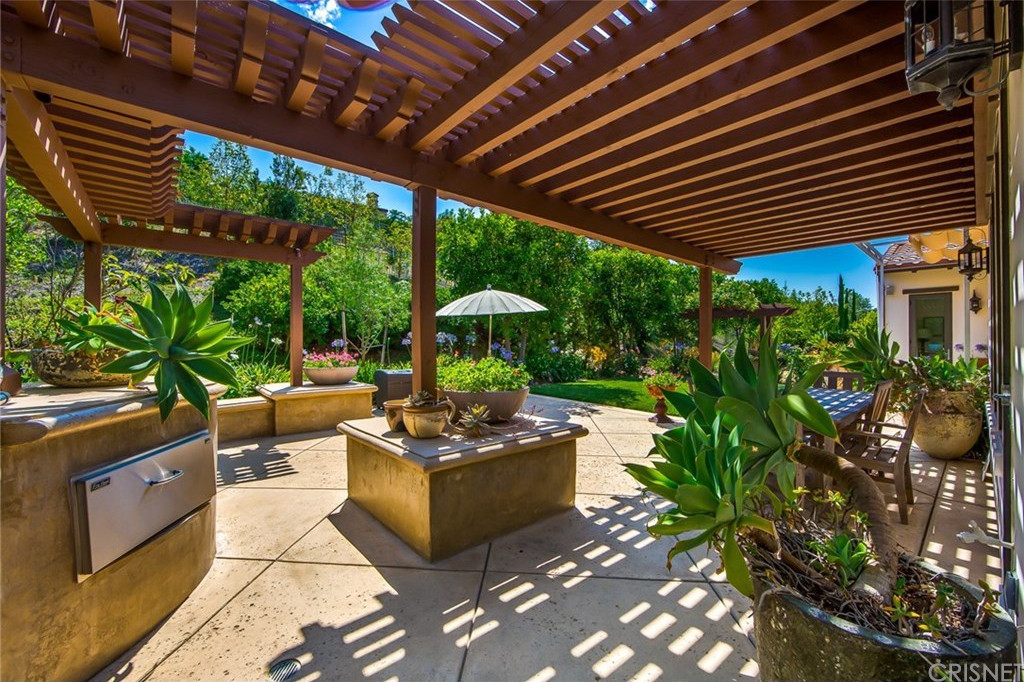 The outdoor dining area and kitchen make this five-bed, six-bath home an ideal place to entertain.