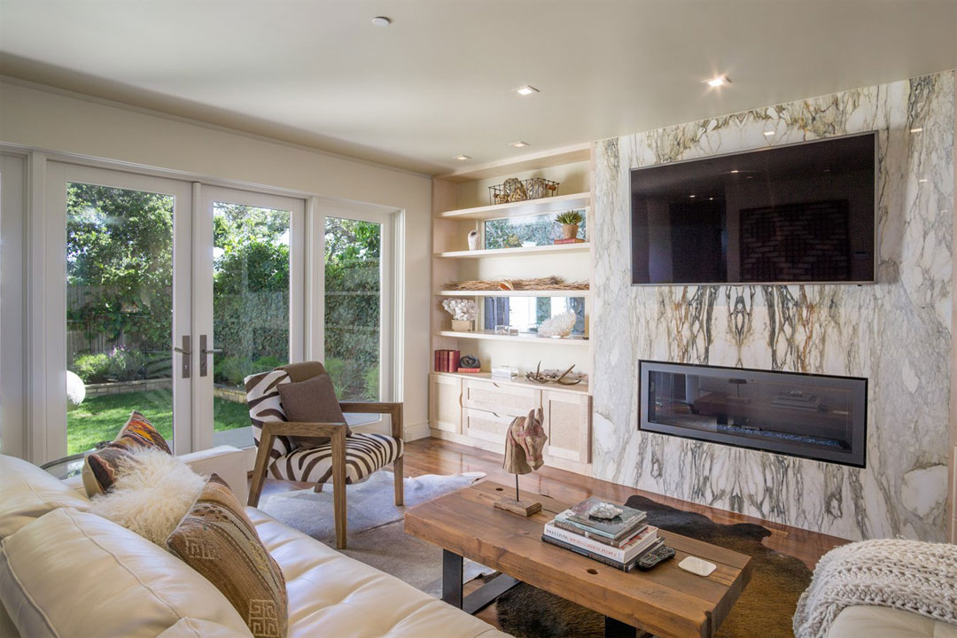 French doors in the den open to the garden.