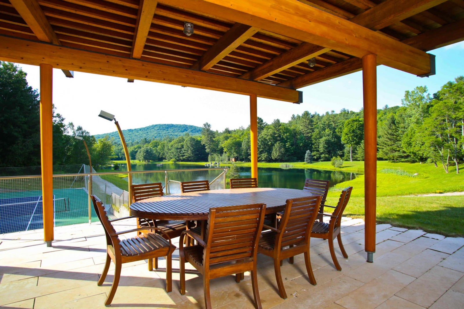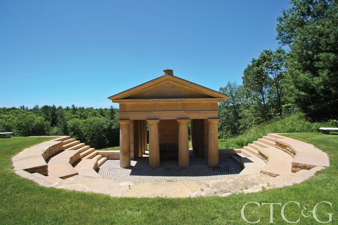 Next up is a Washington listing that looks like a posh resort. The 70-acre spread, selling for a cool $14.9 million, features a five-acre pond and a lighted tennis court sited next to a viewing pavilion with a grass-covered roof. It’s also got an architectural folly in the form of a many-columned, temple-like amphitheater with circular, stair-step-style seating for 50—and if stage fright hits, no worries, audiences will be riveted by the distant views over the Litchfield Hills. Moving inside the 15,000-square-foot, limestone-and-cedar main house, the opportunities for R&R continue: There’s an indoor pool, Swedish sauna, screening room and wine cellar. It’s listed with Kathryn Clair of William Pitt Sotheby’s International Realty.