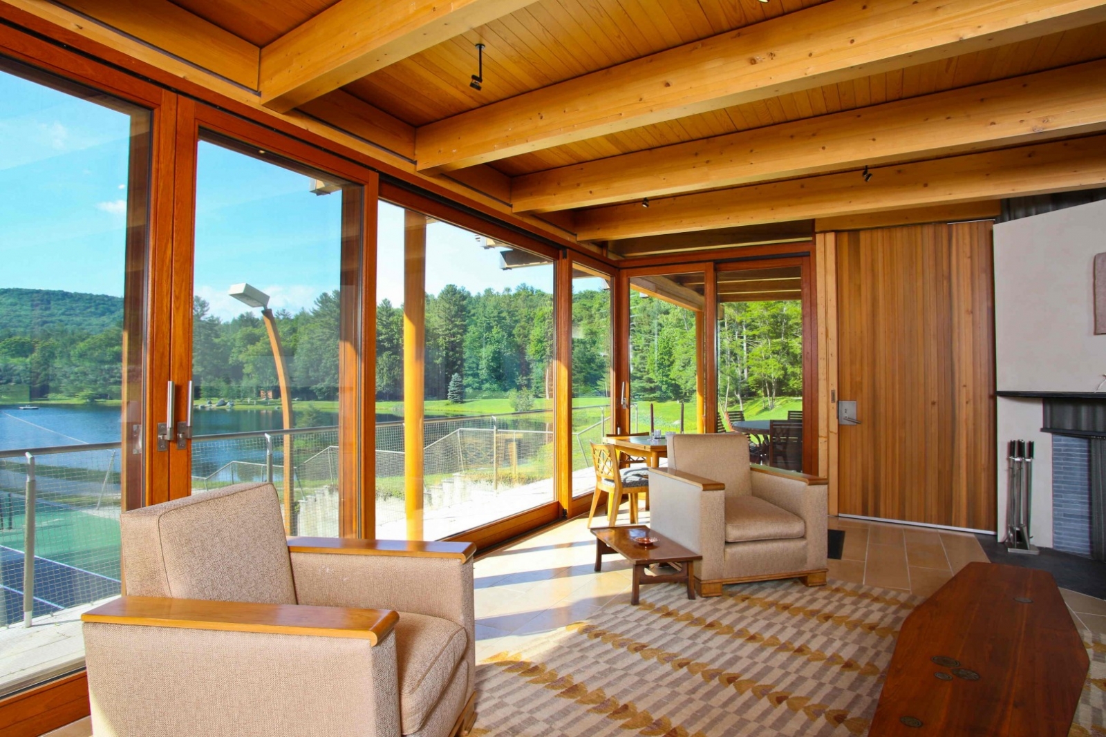 The sun room has a gorgeous view of the pond.