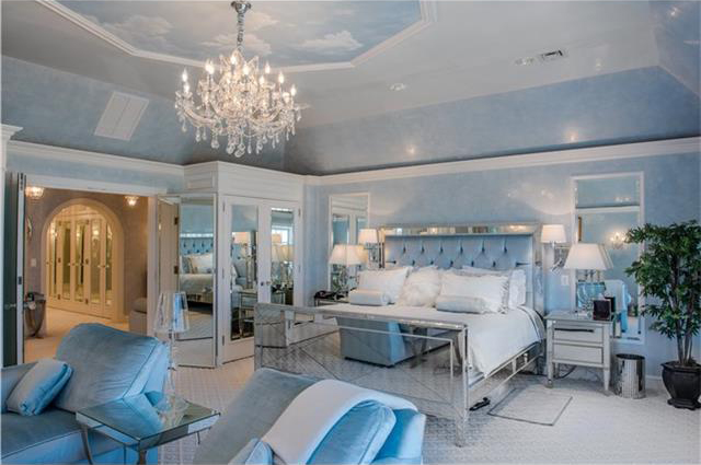 The master suite features a glam mirrored dressing area.