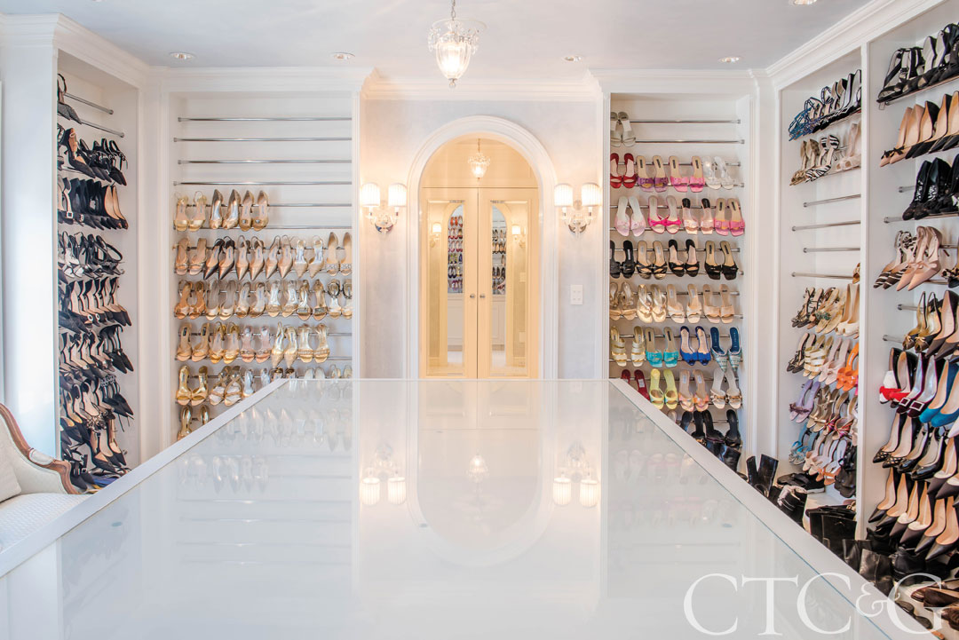 Just in time for Fashion Week, a Weston listing has one of the most glam master suites we’ve ever seen. It opens onto a pretty bedroom with coffered ceilings and a sitting area with a fireplace. But the swag really happens in the massive dressing area with two Bergdorf’s-worthy walls of open storage for shoes—we’re talking hundreds of pairs—and another room dedicated to the display of handbags and luggage. There’s also a long gallery of mirrored-front closets and a bathroom with a chic slipper tub. The rest of the 10,000-square-foot Georgian home is swell as well, offering two pools (indoor and outdoor), a pool house with a kitchen, bedroom, fireplace and two bathrooms, and an office suite with another fireplace and a wet bar—handy for days when you’re “working” from home. Richard Higgins of the Higgins Group has the $2,850,000 listing. 203-520-5356.