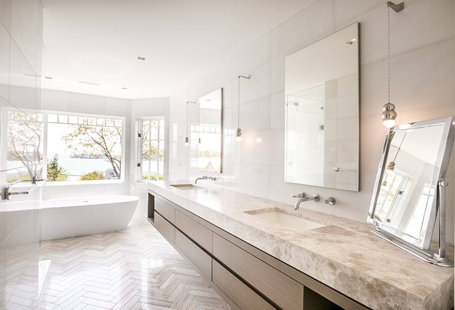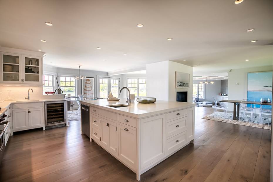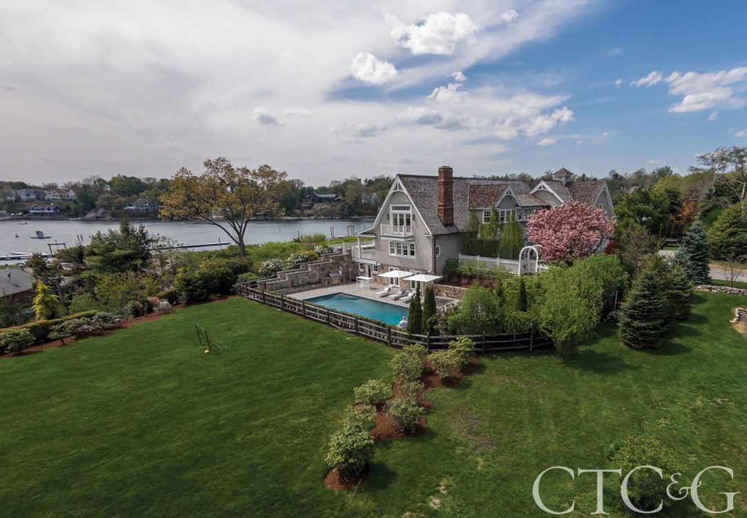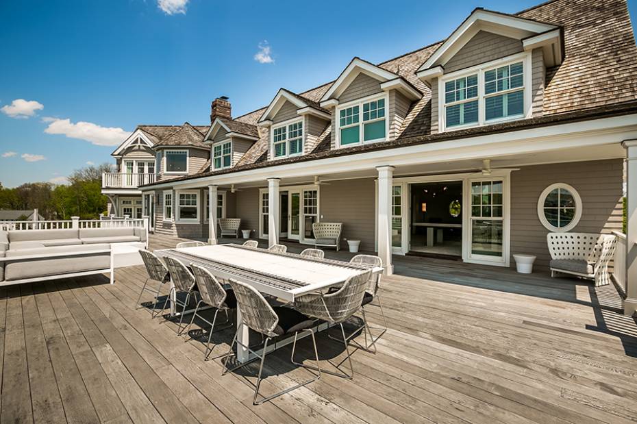 On Wilson Point, a gated enclave in Rowayton, a brand new listing sits high above Wilson Cove with views over Long Island Sound. The 7,299-square-foot Nantucket-style home was renovated and expanded in 2014 by designer Yvonne Ferris, with an open floor plan and access to expansive decks and terraces. It now features five bedrooms and four brand new bathrooms, plus two family rooms. Amenities on the 1.5-acre grounds include a pool with an adjacent kitchen and showers. Membership to the nearby Wilson Point Association offers access to the private beach club, tennis courts and a deep-water dock. The property lists for $6,495,000 with Matthew Lahey of William Raveis.