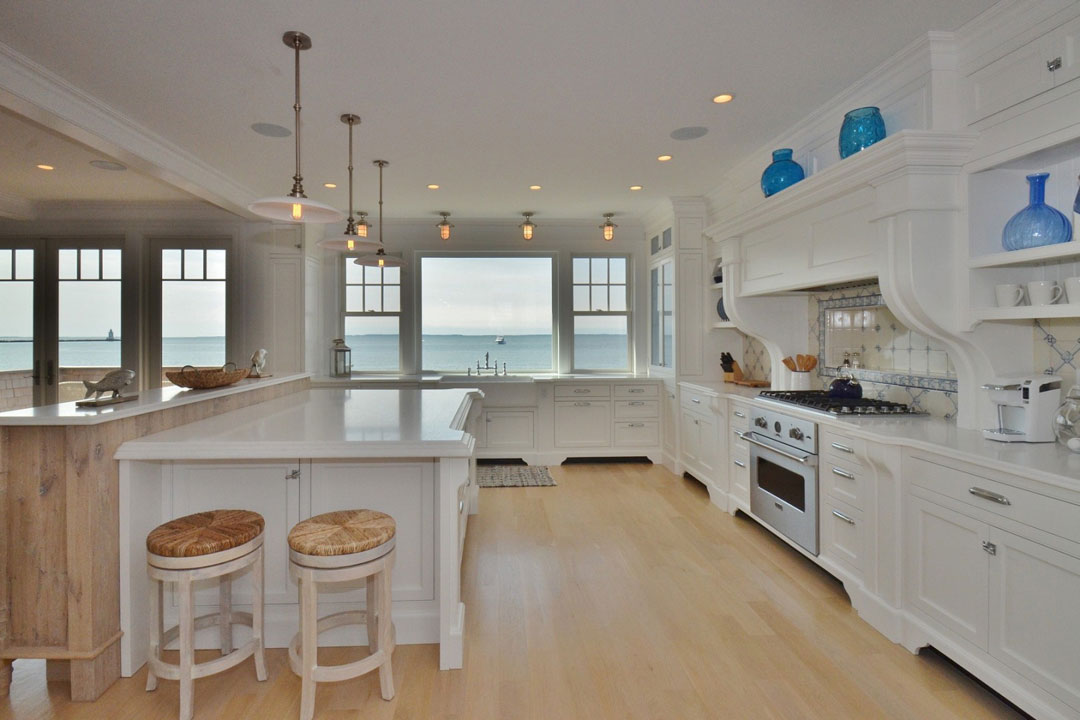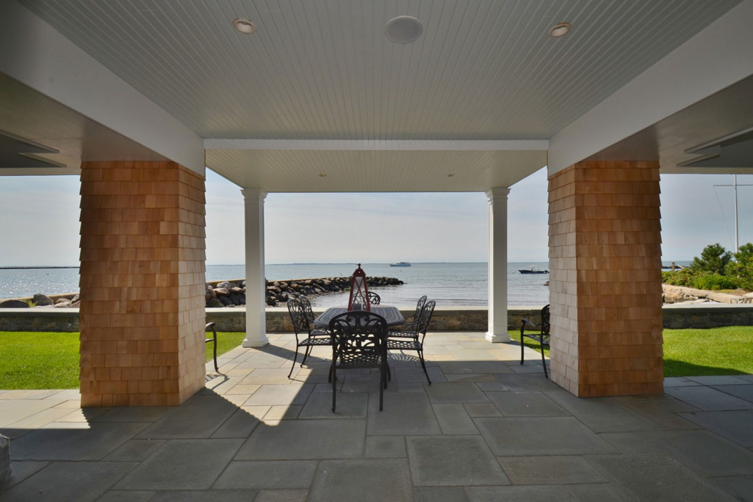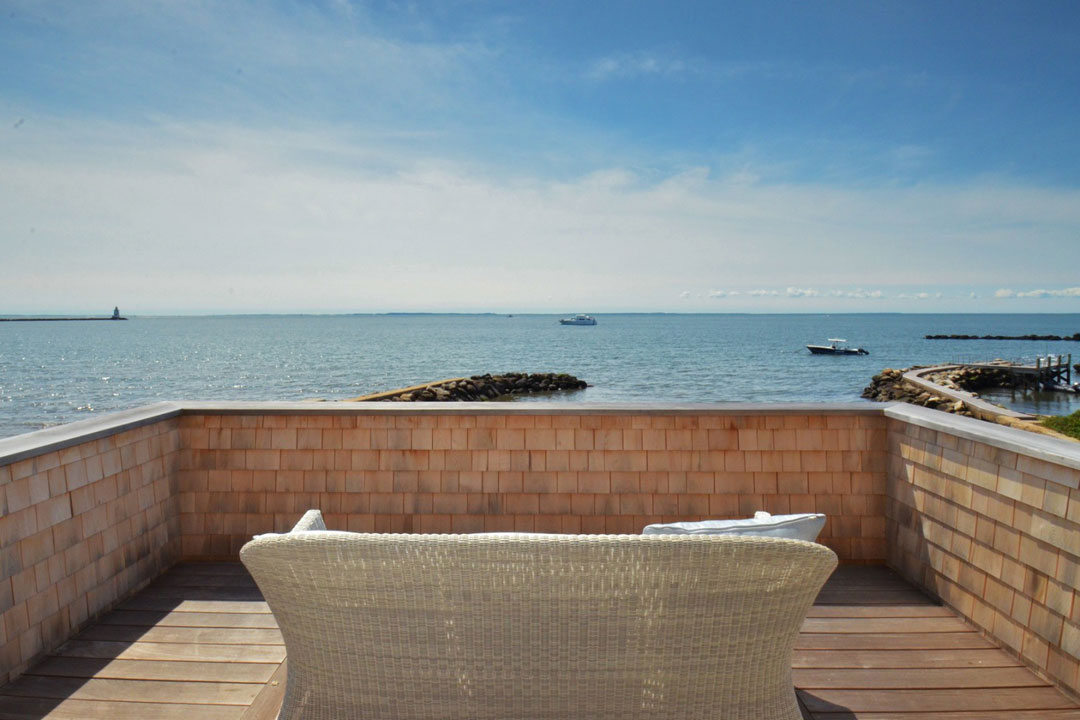 Enjoy panoramic views of Long Island Sound while sitting in the living room.