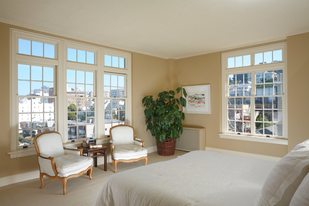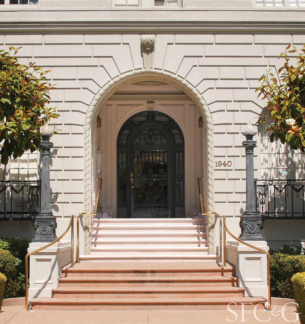 A relative rarity, this full-floor penthouse in Pac Heights combines traditional architectural detailing with expansive Bay and city views. Located atop 1940 Broadway—a 1920s, 10-story co-op building— the 3-bedroom apartment has elegant moldings and fireplaces in the living room and library. On the market for the first time in 25 years, it is offered for $8.2 million by Joseph Lucier of Sotheby’s.