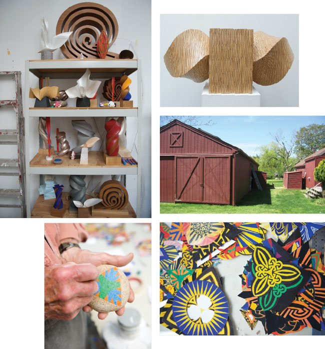 When Youngerman works on sculptures, such as the fiberglass and resin examples on view at LongHouse, he painstakingly maps out each piece on paper before creating a mold for it. “I made 12 sculptures in four years,” says Youngerman, who prefers working with fiberglass because of its lightweight quality. “It was hard, messy, arduous, and expensive, and it took a lot out of me and my life. But it was completely worth the effort.”