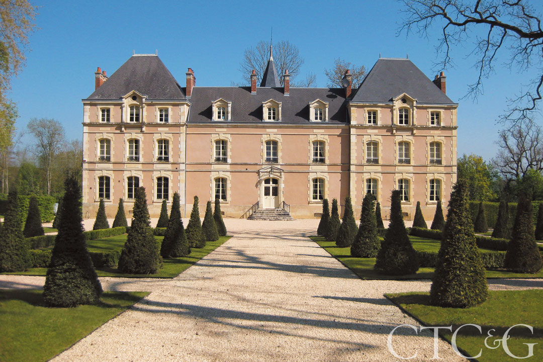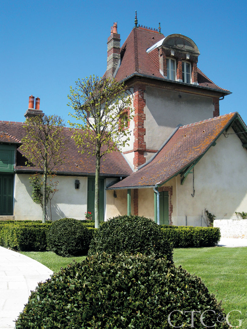 To draw the dovecote (left) and chapel (right) into the French chateau’s dialogue, Doyle Herman Design Associates connected them to the entry grid with a strong cross axis.
