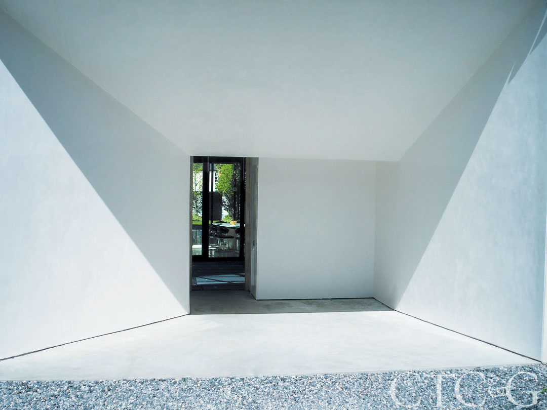 Rather than a traditional front door, guests enter a passageway to the planted courtyard beyond.