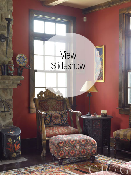 “I have a constant need to create, and I love the look and feel of antique textiles and expressing myself through my work,” says the decorative artist, as she ambles through the Fairfield house she and her husband, Joel (who owns a trade show business), and their two children moved into last January after almost two years of construction. Davis worked closely with architect George Dumitru and builder Jeremi Jablonski to create a home that’s not only rich in artistic diversity but also approachable and comfortable. “The homeowners wanted a mostly open floor plan,” says Dimitru, “so the entire first floor has few walls. From the fireplace in the family room, you can see all the way to the fireplace in the billiards room.” Much of the interior is Old World in flavor, featuring purchases by Davis on her various trips around the United States and Europe. What catches the eye immediately upon entering the kitchen is a marvelous stove backsplash constructed of six terra-cotta decorative squares that were pieced together to form a single image. The tiles are actually from a building in Chicago and each weighs about 40 pounds. “I saw them sitting on the lawn at the Brimfield Antique Show and fell in love with them,” says Davis. “It inspired the rest of the kitchen design.”