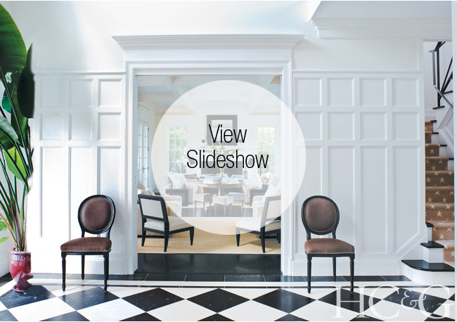 “We joke that the house has a little Hollywood Regency polish,” says Laslo, who also designed Wyse’s apartments both in Manhattan and West Palm Beach, “but it’s really very simple. Ken has always been very tailored, and the house has very clean lines.” Wyse specified a black and white palette, with creamy walls and five-inch wood plank floors stained dark brown. Laslo softened and enriched the scheme with a wide range of complementary brown tones. “My guests provide the color,” says Wyse.