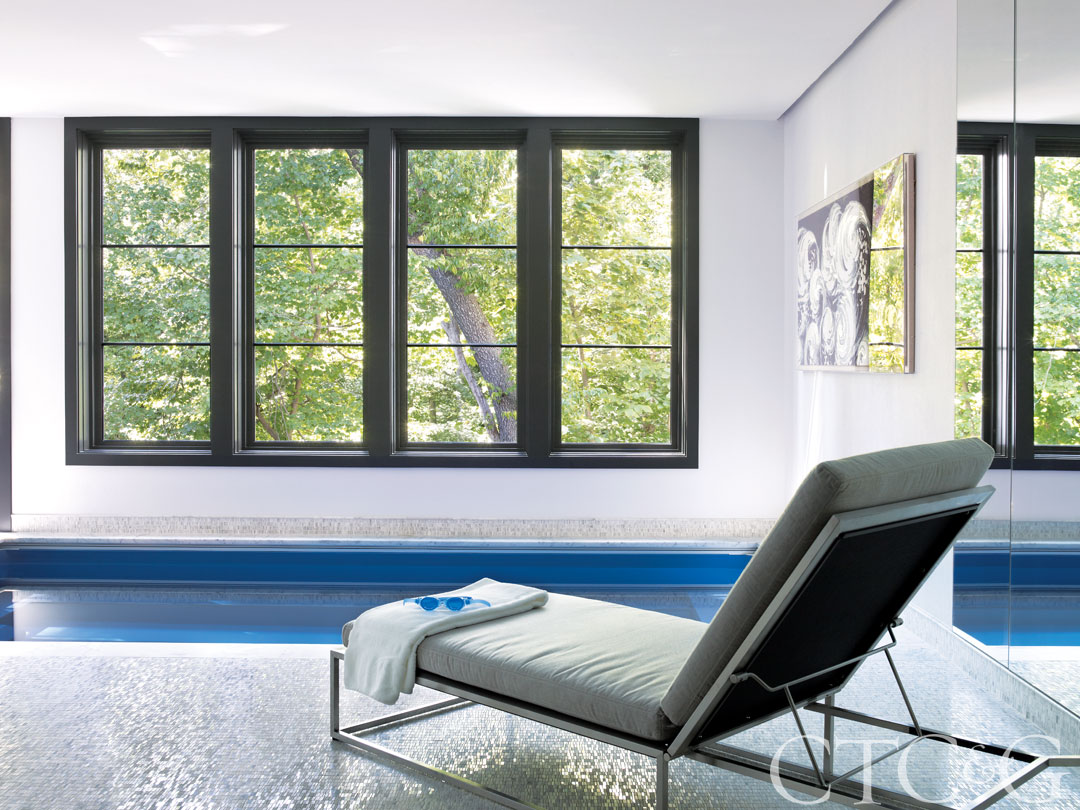 You can swim year-round and forget about counting laps in the pool by Endless Pools. Gloster chaise is through Walters Wicker.