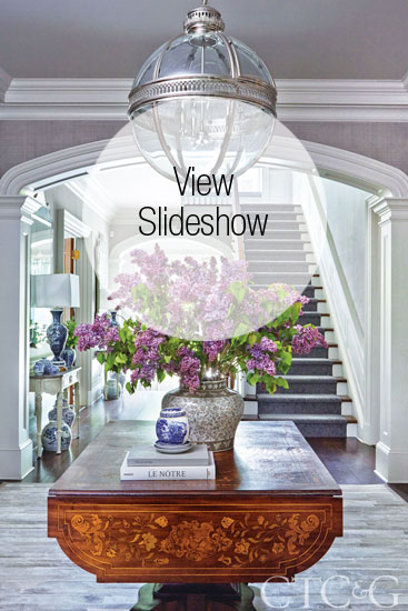 The renovation of the house was nearly complete when interior designer Amy Aidinis Hirsch received the ultimate compliment from her client. Responding to the softly silvered David Bonk wallcovering that wraps the entrance and runs through the center hall, the homeowner said, “It feels like a hug when I walk through the door.” Those simple words left Hirsch completely validated.