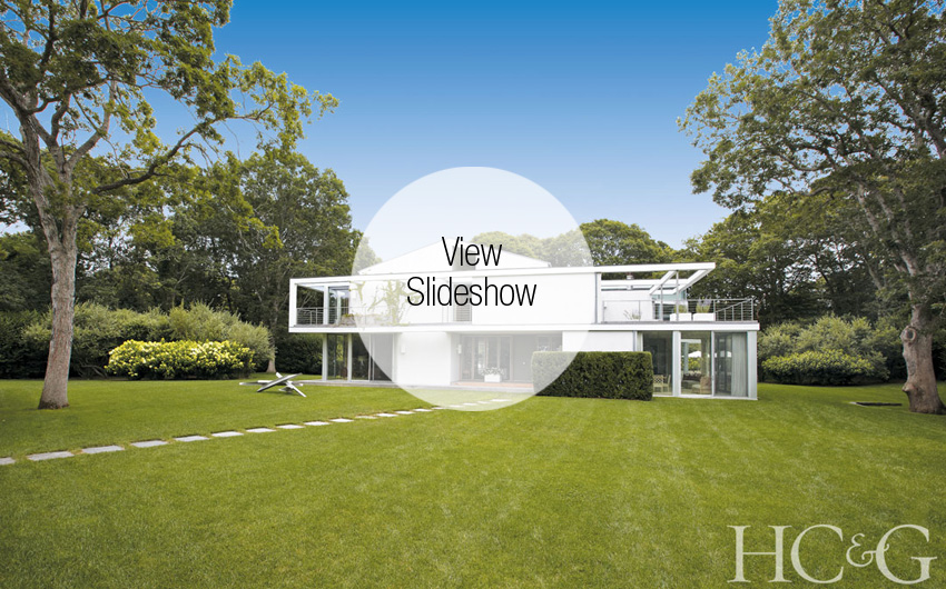 Known informally as the White House, this 1970s Don Chappell modern in Georgica stands out among its more traditional neighbors, as though it had been plunked from some groovy outer orbit onto a never-ending expanse of green lawn. Built in sections at odd angles, with cantilevered terraces and a façade of gleaming white walls and soaring glass panels, it immediately caught the eye of a stylish London-based East Hampton-ite and her financier husband, who summer on the East End with their two daughters.
