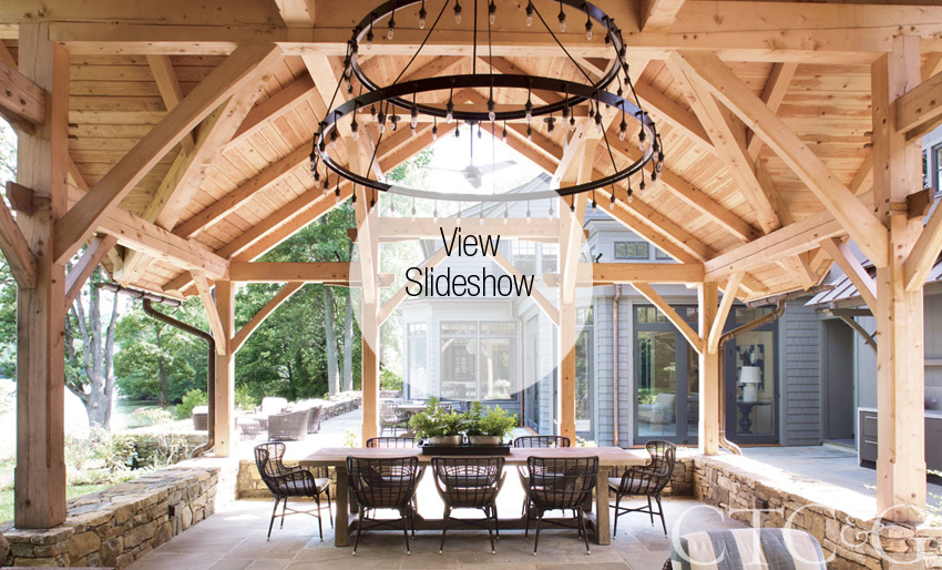 Of the simple wood-beamed pavilion at this rambling lake house perched on the shores of Lake Waramaug, architect Robert Dean says, “It can function truly as an outdoor party room.” Dean, working with interior designer Bettina Routh, transformed this house from a stuffy suburban style into an informally sophisticated house for an incredibly tight-knit family, who also happen to have an incredibly tight-knit circle of friends—the kind of people who’d welcome an outdoor party room.