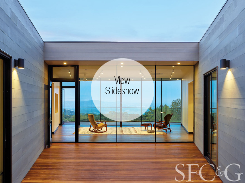 As with Hydeaway House, Schwartz started with the concept of a basic box. “You let the site push and pull on it to create a new geometry that’s really tailored to it,” he says. An expansive deck overlooking views of Sonoma Valley was an essential element, as was a central courtyard. “If one is in the sun, then the other is in the shade, so you can choose between the two,” adds Schwartz, who wanted to create an ample amount of flat outdoor space that could be used in all seasons. The courtyard is also a graceful, efficient way to create a sense of privacy within a fairly small footprint; the three bedroom suites are spaced out around it, making the house feel much bigger than its 2,000 square feet.