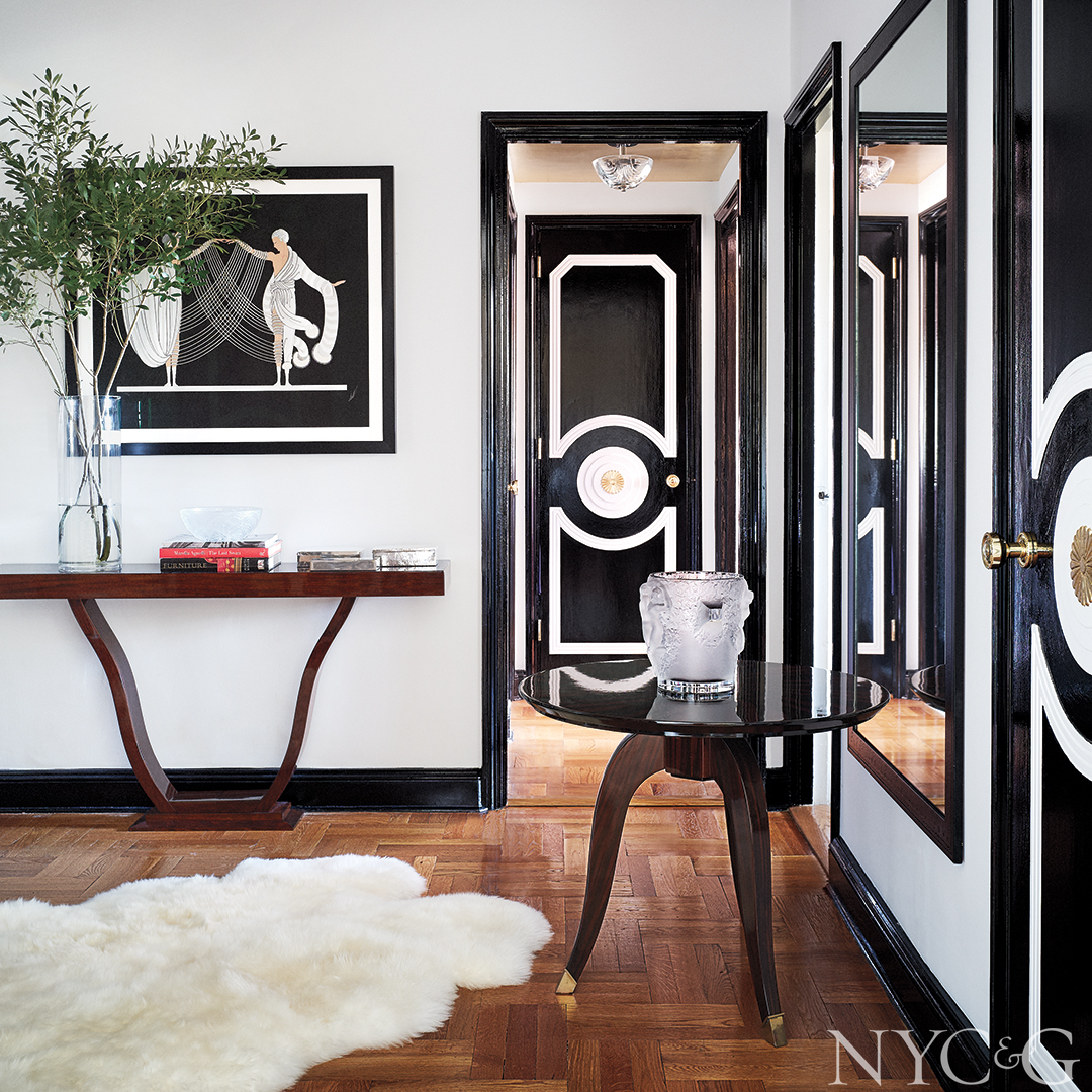 Naturally, Foster’s apartment, a one-bedroom classic five overlooking Central Park in a building designed by Emery Roth & Sons in 1949, was to become a “jewel box.” Riffing off a few pieces Foster already owned (a French Art Deco sofa, which she’d purchased in Prague and had upholstered in white lamb’s wool; a stunning desk by Sanyas et Popot; and some lovely vintage Lalique vases), Fuller began by embellishing the apartment’s beautifully proportioned rooms.